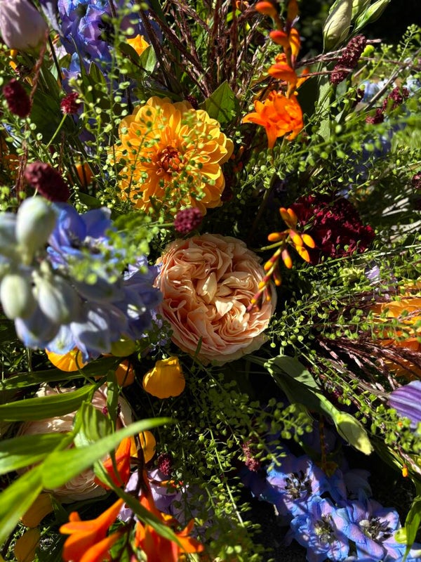 Dit lieve, kleurrijke bloemstuk verteld woorden die je zelf niet kunt vinden bij een overlijden. Het bied troost en kracht terwijl je naar het stuk kijkt. Met prachtige veldbloemen in verschillende kleuren vormt een liefdevol bloemstuk.Verkrijgbaar in twee verschillende formaten.