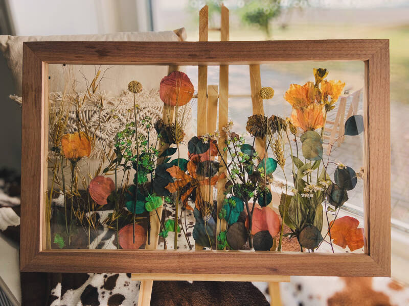 Bloemen spelen een bijzondere rol op jullie bruiloft, ze omlijsten de mooiste momenten en brengen jullie liefdesverhaal tot leven. Hoe mooi is het om die herinnering voor altijd tastbaar te maken? Ik bied de mogelijkheid om de bloemen uit jullie bruidsboeket te vereeuwigen in een lijst zoals op de afbeelding hier naast. Met zorg en liefde pers en conserveer ik de bloemen, waarna ik ze in een stijlvol frame plaats. Zo blijft een stukje van jullie grote dag altijd bij jullie, als een kunstwerk vol betekenis. Willen jullie jullie bruidsbloemen laten vereeuwigen? Neem contact op voor de mogelijkheden!